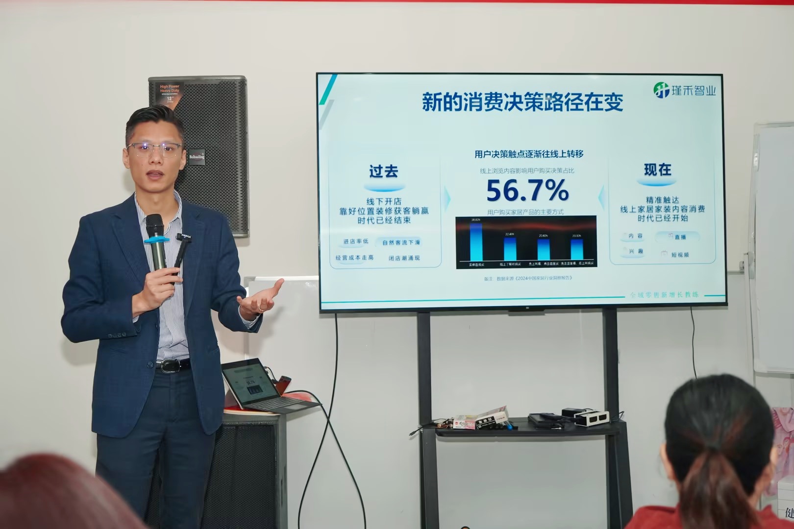 下午的新媒體實戰運營培訓中,蒙太奇新媒體運營總監唐群分別針對抖音、小紅書、視頻號這三個平臺的基礎知識、運營規則以及廣告投放技巧等理論知識進行了分享。同時,還結合了蒙太奇在各平臺賬號從0到1的成長實戰經驗,為經銷商家人們進行了全面且深入的授課。助力各經銷商打通各平臺的底層邏輯,從而更好地擁抱新媒體平臺。