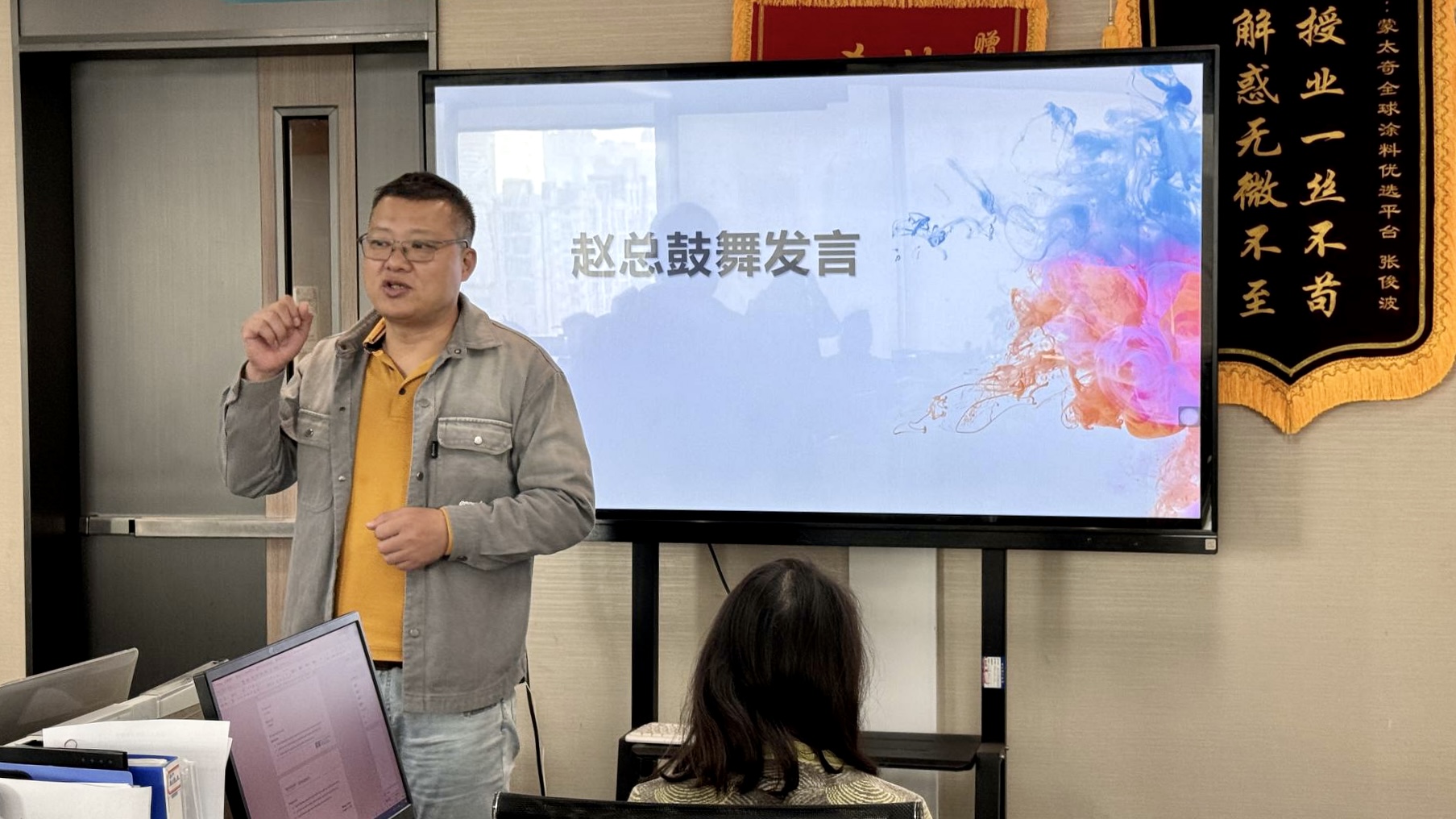 隨后,蒙太奇聯(lián)合創(chuàng)始人、藝術(shù)涂料最美老板娘呂芳方女士發(fā)表致辭,引領(lǐng)全體員工針對2025年蒙太奇奮斗目標進行宣誓。