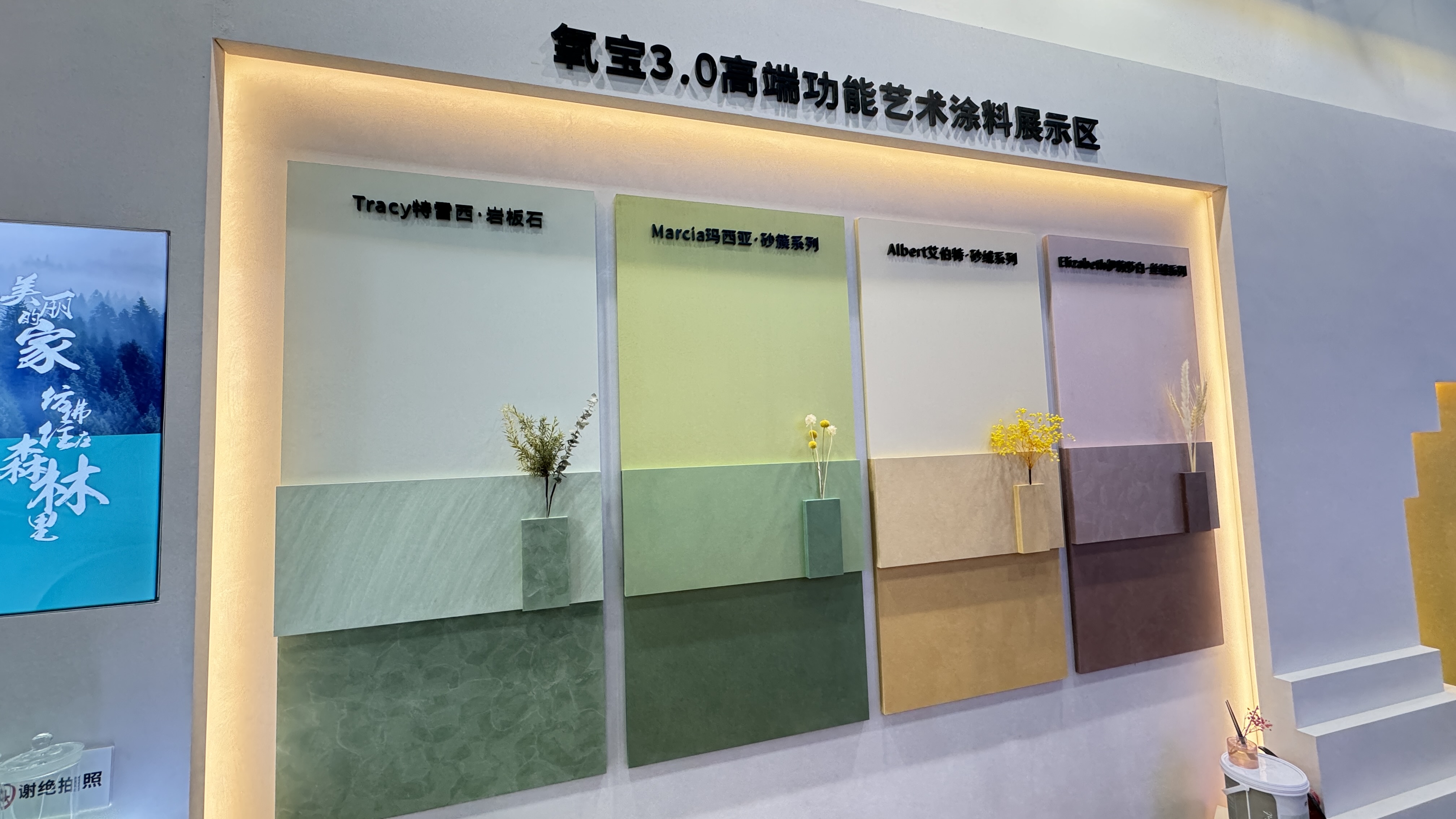 展館內(nèi)設(shè)有兩大產(chǎn)品體驗(yàn)區(qū),為觀眾帶來沉浸式藝術(shù)涂裝體驗(yàn)。其中,氧寶3.0高端功能藝術(shù)涂料展示區(qū)聚焦環(huán)保與性能升級(jí),結(jié)合檢測(cè)實(shí)驗(yàn)直觀展示如何把家打造成“森林氧吧”。臻石高定系列展示區(qū)帶來一系列備受矚目的藝術(shù)涂料新品,以天然石材質(zhì)感詮釋高端定制趨勢(shì),滿足不同消費(fèi)者對(duì)高品質(zhì)墻面裝飾的需求。