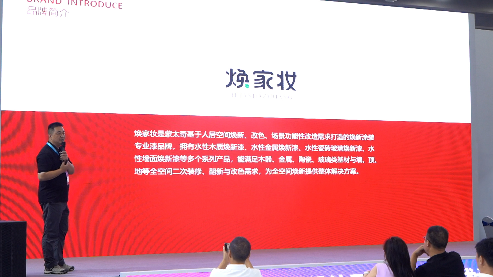 接著,蒙太奇市場總監周曉東先生對蒙太奇新品牌"煥家妝"進行了詳細介紹。煥家妝是基于人居空間煥新、改色、場景功能性改造需求打造的煥新涂裝漆專業品牌,擁有水性木質煥新漆、水性金屬煥新漆、水性瓷磚玻璃煥新漆、水性墻面煥新漆等多個系列產品,能滿足木器、金屬、陶瓷、玻璃類基材與墻、頂、地等全空間二次裝修、翻新與改色需求,為家居、場景和全空間煥新提供整體解決方案。