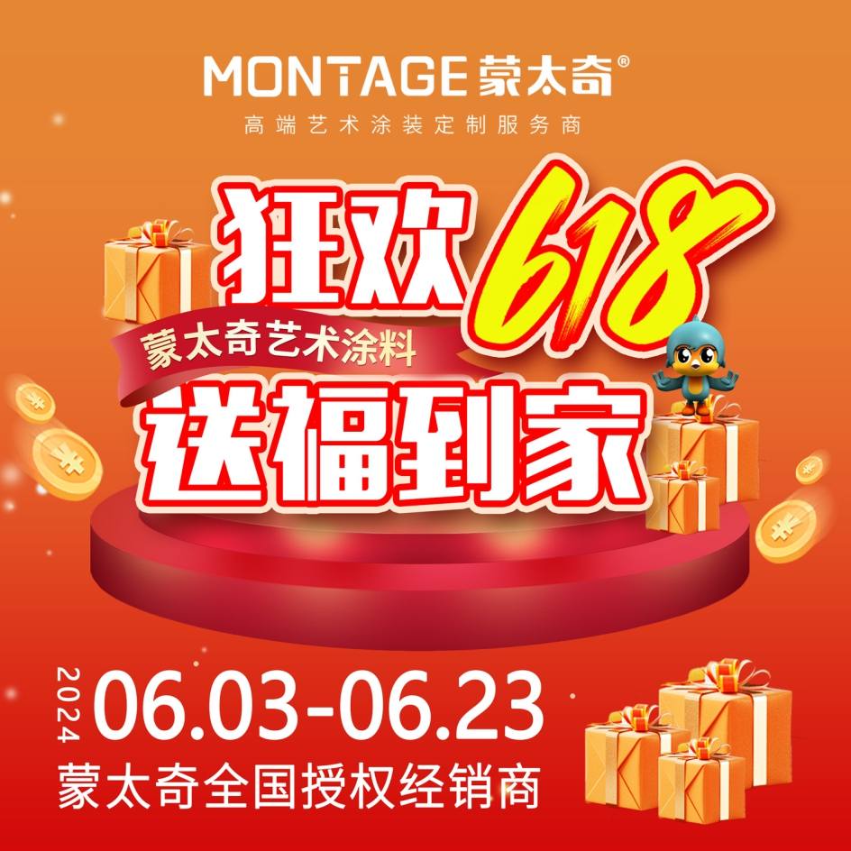 美好生活,藝術(shù)涂裝就選蒙太奇!6月3日-6月23日,蒙太奇隆重推出狂歡618·送福到家全國(guó)促銷活動(dòng),無論是新房裝修還是舊屋翻新,都有福啦!